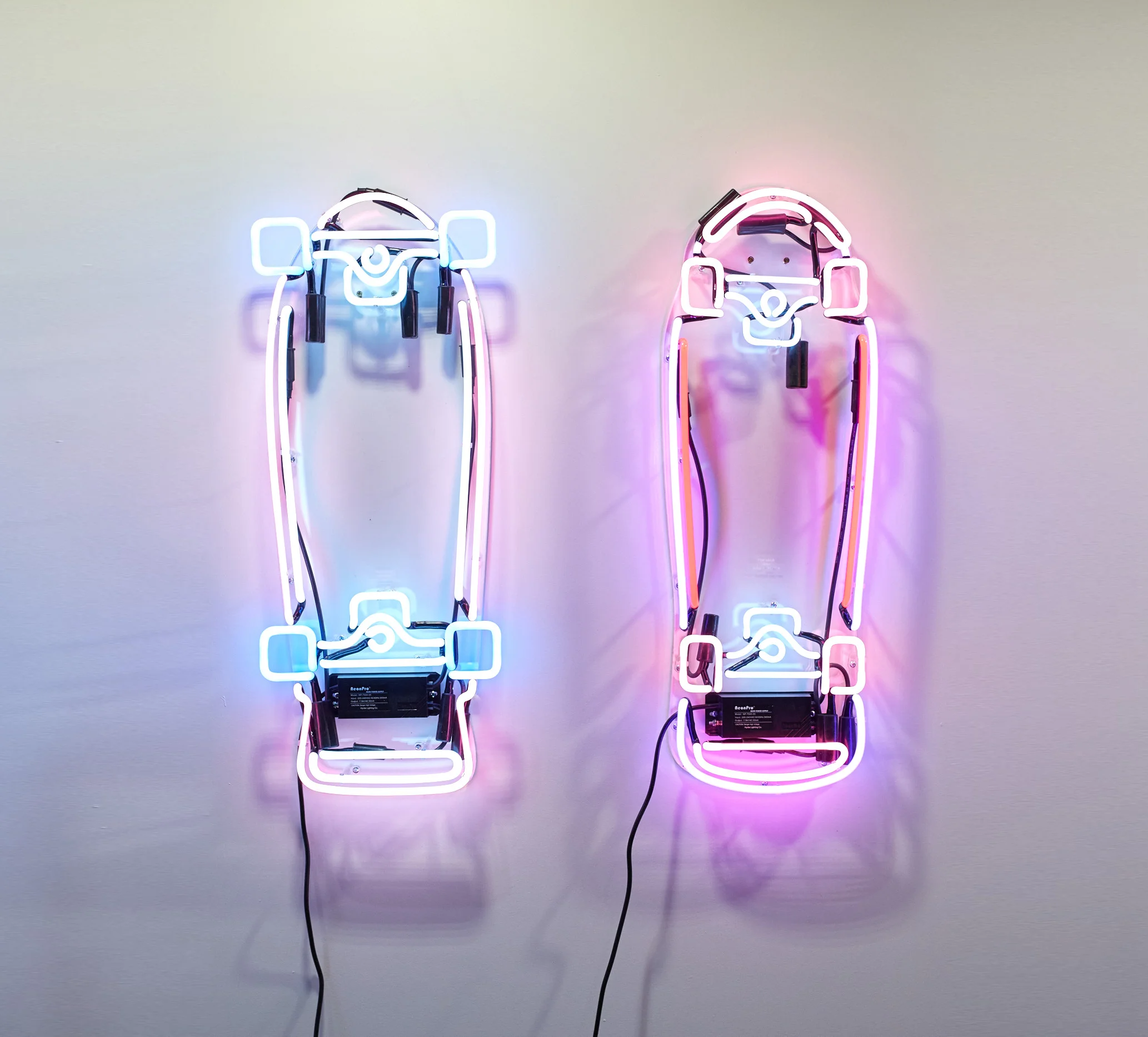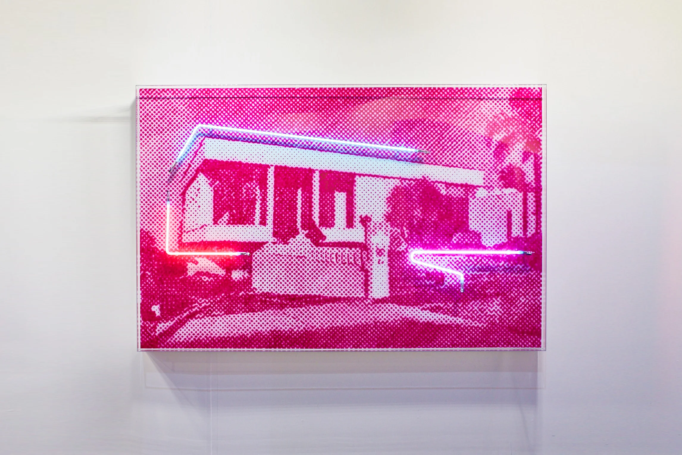 Airbrush acrylic polymer and neon on dibond, acrylic frame